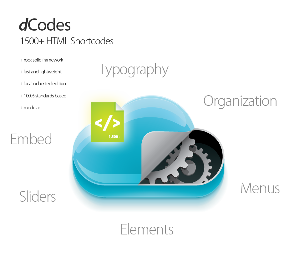 Comes bundled with dCodes, a powerful HTML/CSS extensions library with 1,500+ shortcodes. Works locally or via a hosted CDN solution.